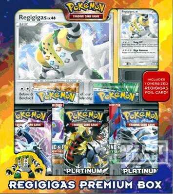 Depois de Dialga, Palkia e Darkrai Premium Boxes, agora é a vez do Regigigas Premium Box, que estará a venda na lojas a partir de Fevereiro. Ele irá conter um Regigigas de tamanho gigante (que origina da promo do 11º filme lançado no Japão), um Regigigas tamanho normal, e mais 5 booster packs. Possivelmente, 3 dos 5 booster packs, serão Platinum e os outros dois serão Diamond e Pearl.