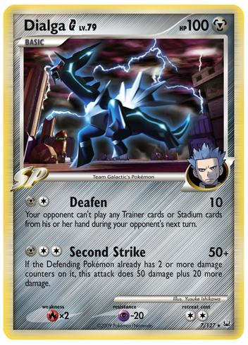 O site oficial TCG colocou novas informações sobre um carta para o set "Platinum”. Carta se trata de "Dialga" O card é Dialga [G] que pertence ao líder da equipe Galactic Cyrus