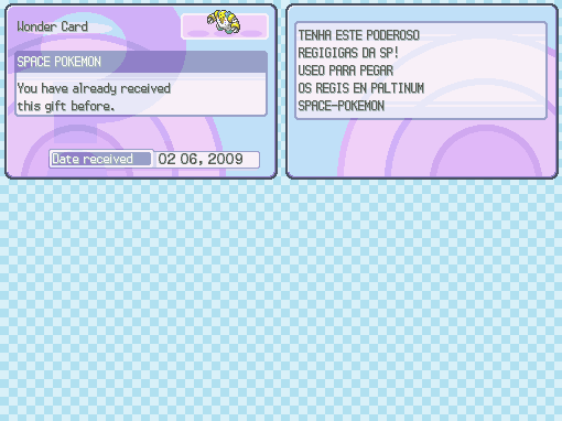 Tradução : "Atenção Treinadores Pokémon! No dia 29 de janeiro o site pokemon.com irá anunciar uma rara oportunidade para acrescentar um misterioso Pokémon no seu jogo Pokémon Diamond ou Pokémon Pearl. Quem é esse Pokémon? É secreto, por isso não lhe direi. Confira o site na quinta-feira, 29 janeiro, para mais informações.
