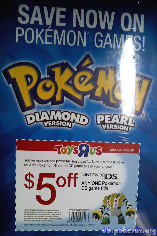 No evento, dois freebies serão distribuídos à todos os clientes que freqüentam a loja. O primeiro é o "$ 5 off" que é um cupom válido somente a partir de março. Da mesma forma que o cupom do Shaymin, o presente só poderá ser utilizado para a compra de qualquer jogo de "Nintendo DS" da série Pokémon. Você não pode usar mais de um desses cupons para à compra de um jogo para ter desconto.